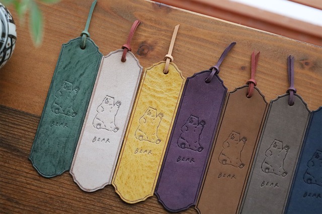 なんとも憎めない ぽっちゃりくまさんの 革の栞ができました! くまさんは手を挙げて挨拶しています。 読書の時間に、 くすっと、ひと息。 そんなお供に。どうぞ。 ※こちらは箔押しver.の販売です。