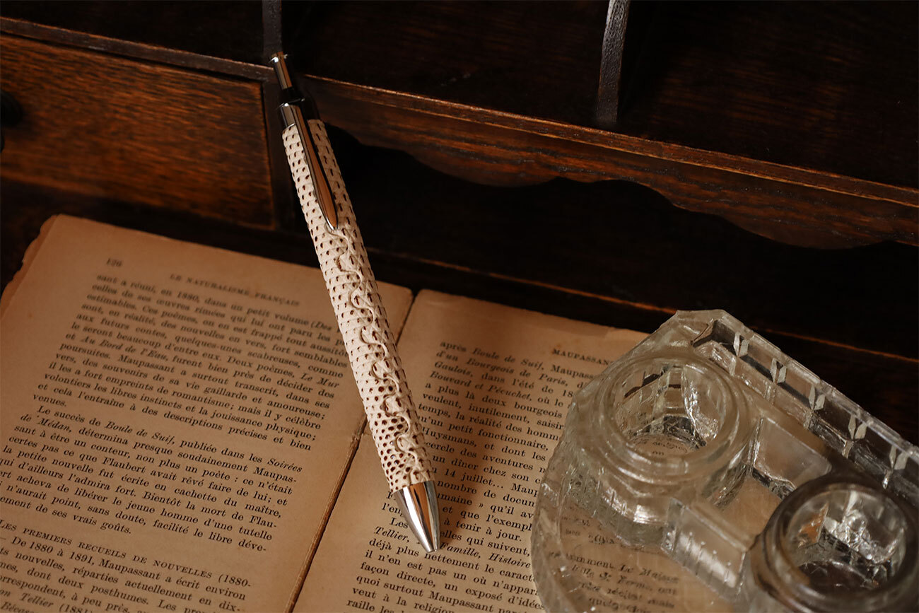 リザードの凹凸部分に漆が乗るため、一枚の革でも表情が異なり、